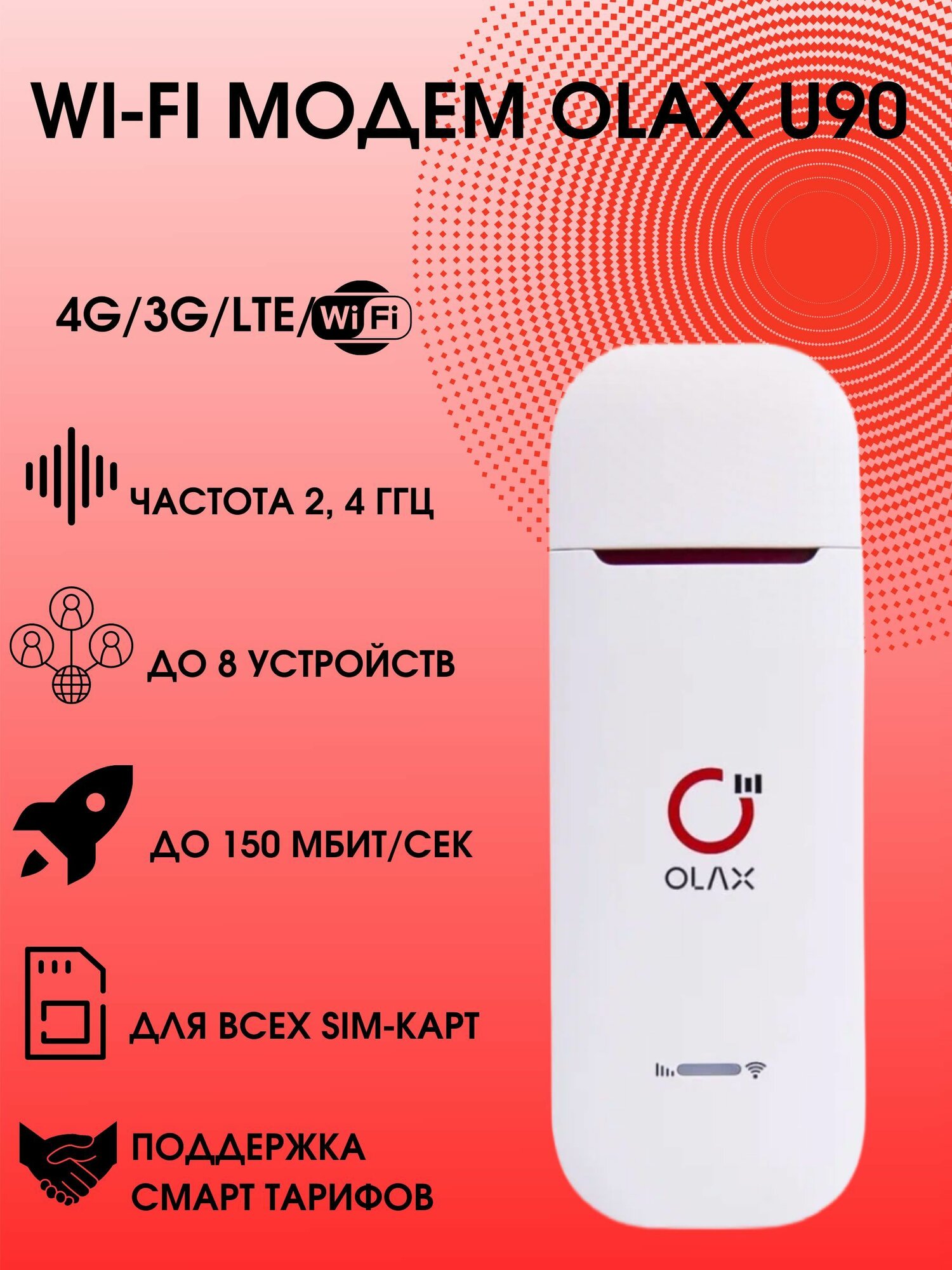 4G/LTE WI FI модем OLAX U90, smart ttl, 2,4Ггц, выход под антенну CRC9, белый интересное:
