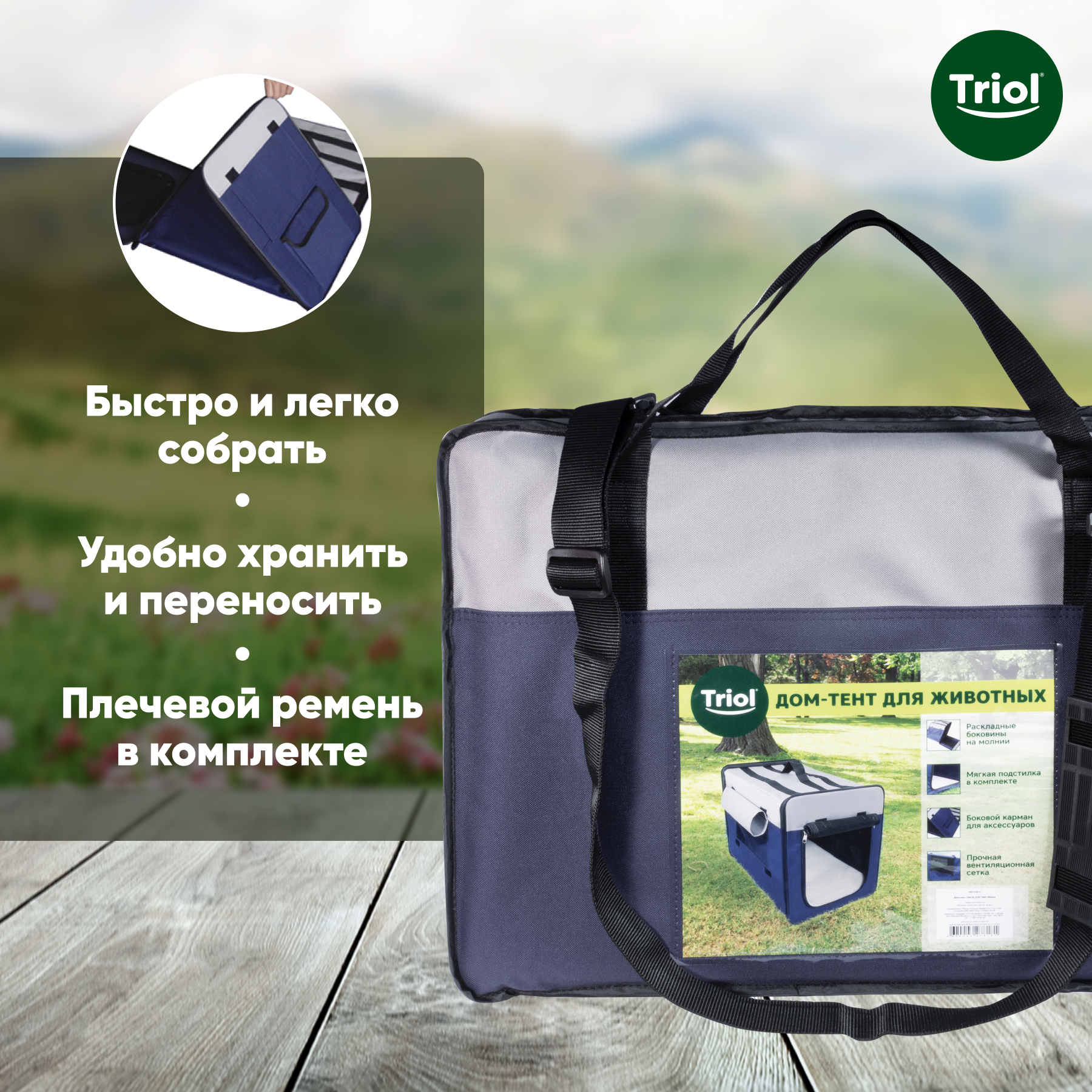 Домик-переноска для собак Triol Дом-тент 1047XL, 97*66*74 см, синий интересное: