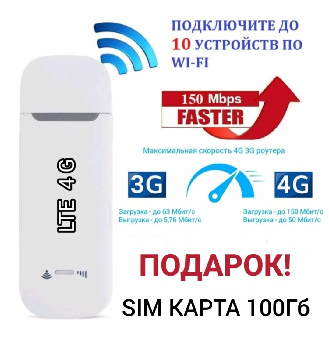 Модем 4G (LTE) WiFi Роутер wi fi интернет модем + СИМ карта В подарок! интересное: