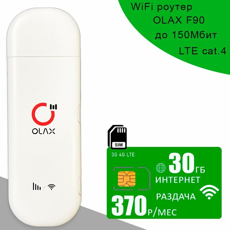 Беспроводной 3G/4G/LTE модем OLAX F90 I сим карта с интернетом и раздачей, 30ГБ за 370р/мес интересное: