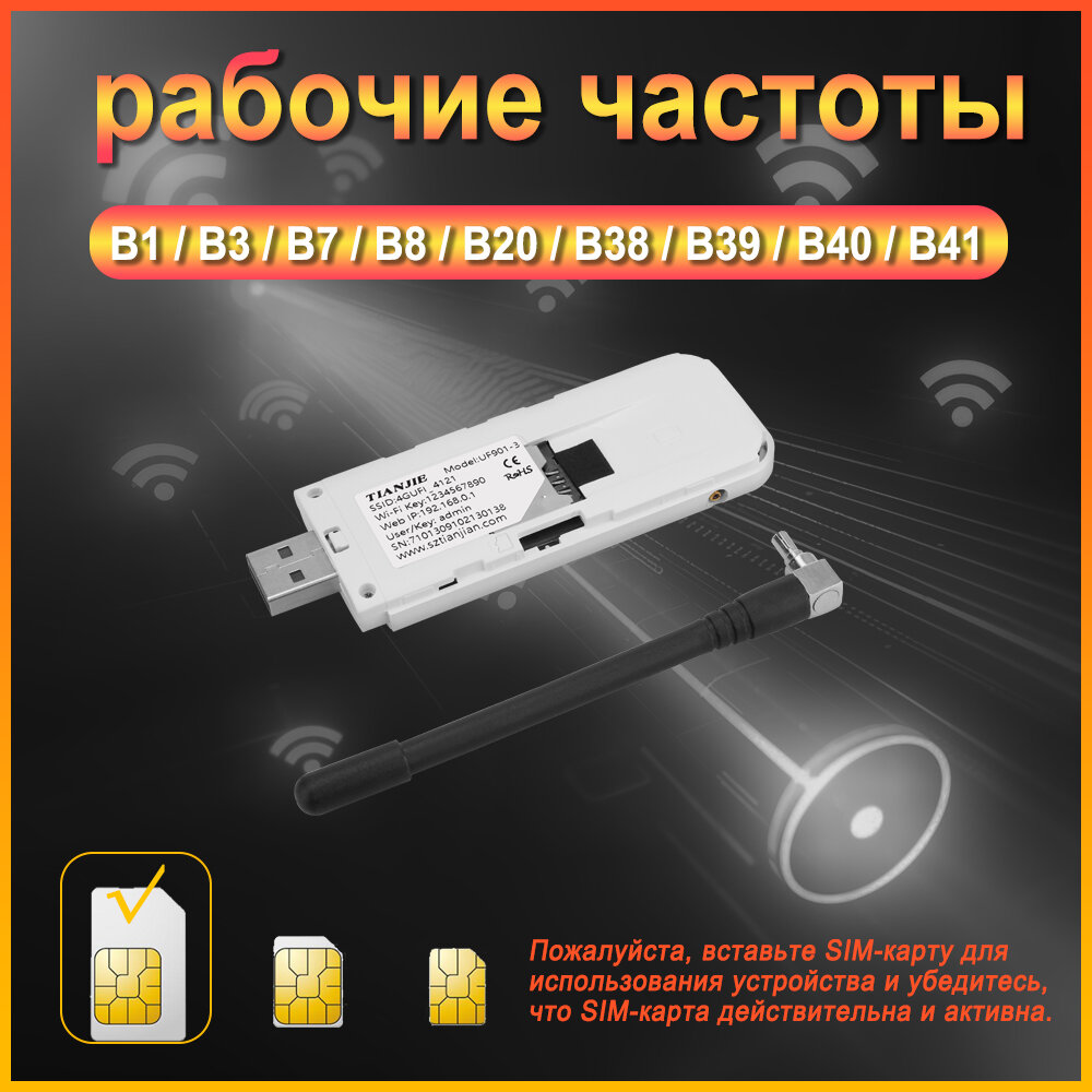 Купить TIANJIE 4G USB-модем с точкой доступа Wi-Fi, SIM-роутер со съемной антенной (1 шт.),4G LTE модем, роутер wifi