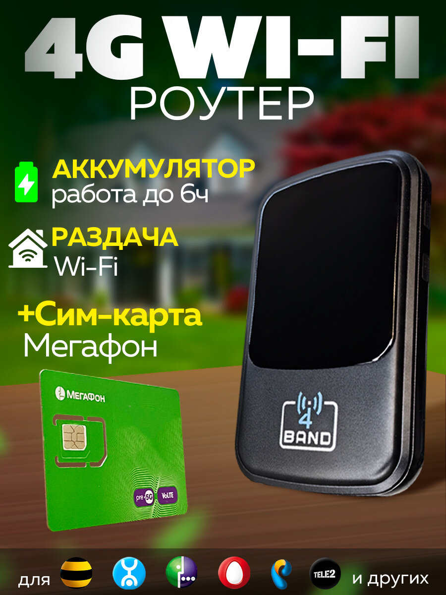Любой Тариф 4G WiFi Мобильный Модем - Роутер 4BAND + Сим Мегафон 300 гб интересное: