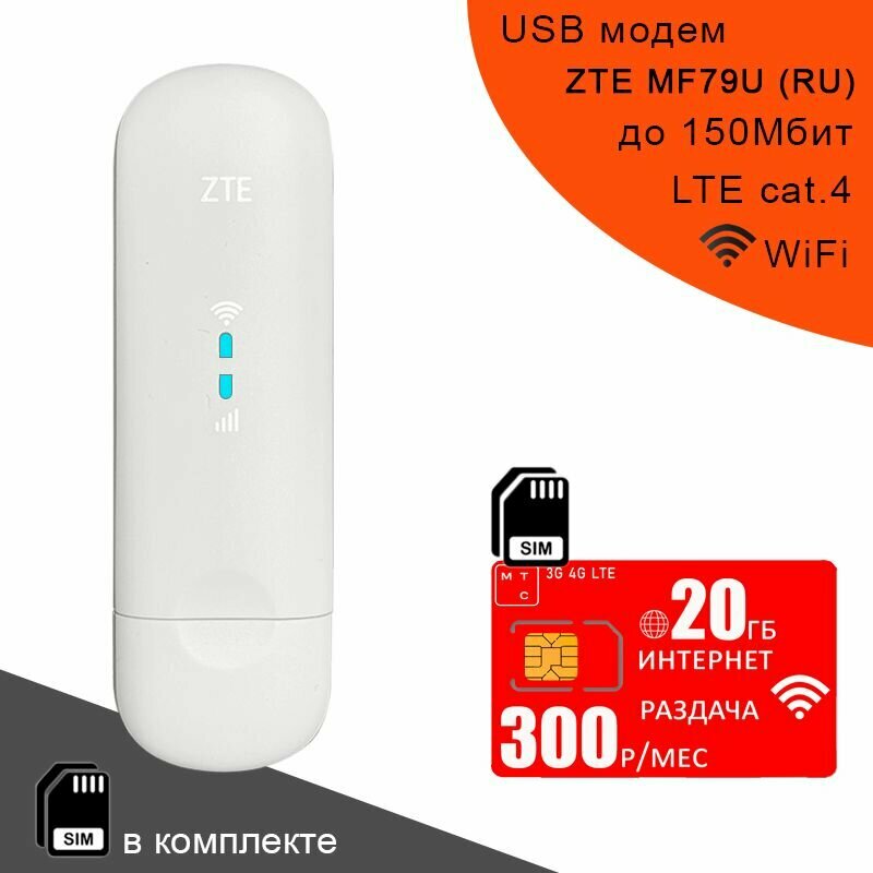 Купить USB модем ZTE MF79U (RU) I сим карта МТС с интернетом и раздачей, 20ГБ за 300р/мес