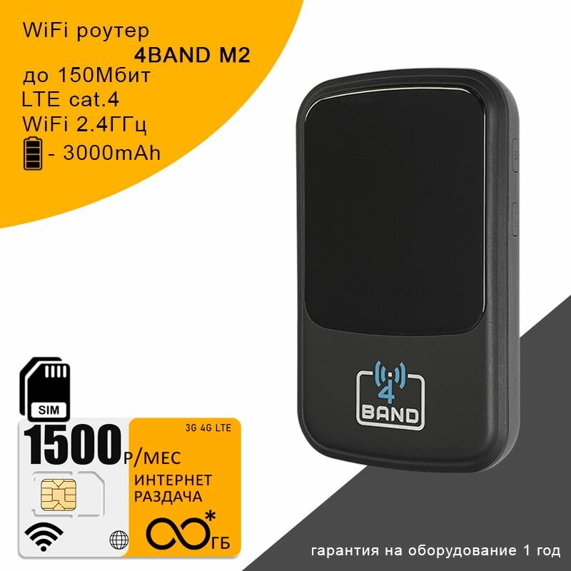 Купить Wi-Fi роутер 4BAND M2 + сим карта с *безлимитным интернетом за 1500р