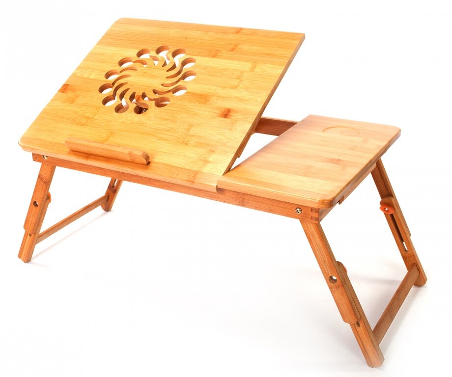 | Плюсы: | Деревянный, лёгкий , легко регулируемый по высоте, компактный. Он больше заточен на работу с ноутбуком/планшетом, чем для еды и питья. |