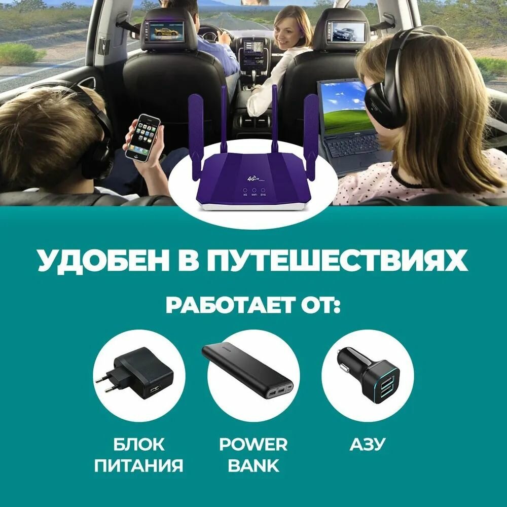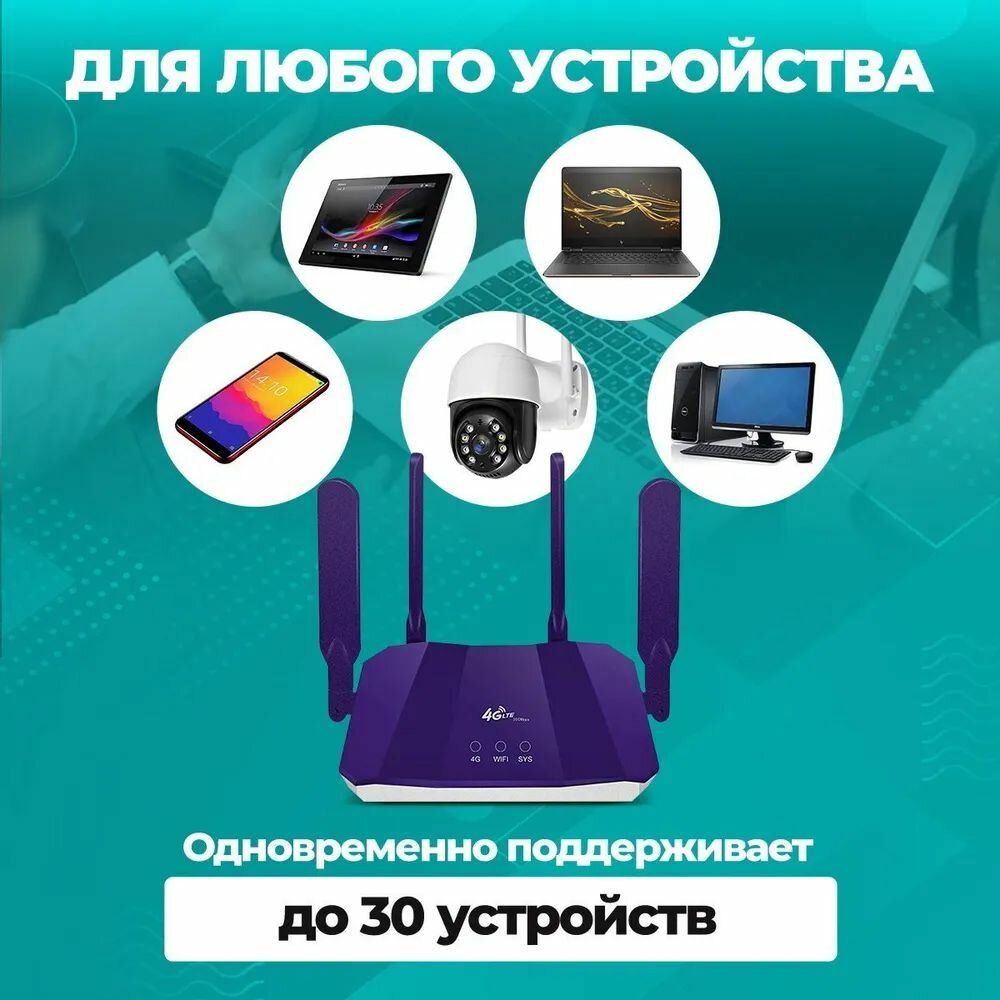 Роутер WiFi с сим картой LTE 4G 5G фиолетовый для дома, дачи или офиса интересное: