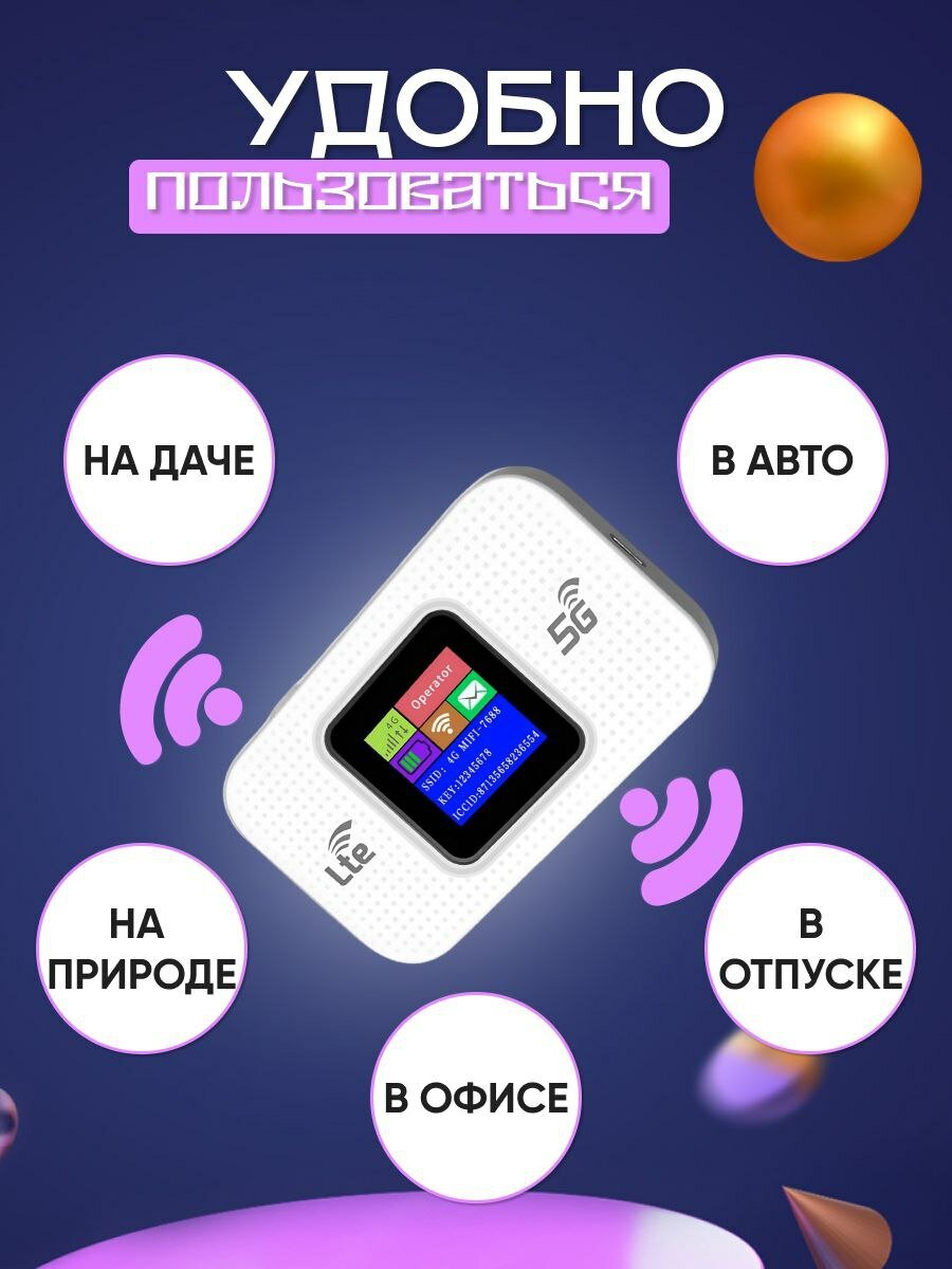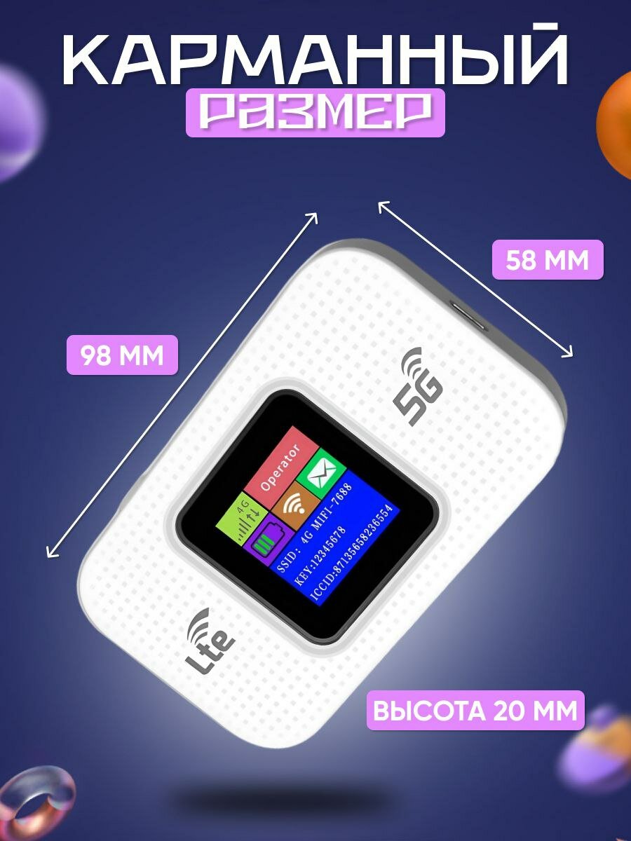 Карманный роутер, 4G, LTE, Wi-Fi, встроенный аккумулятор, белый интересное: