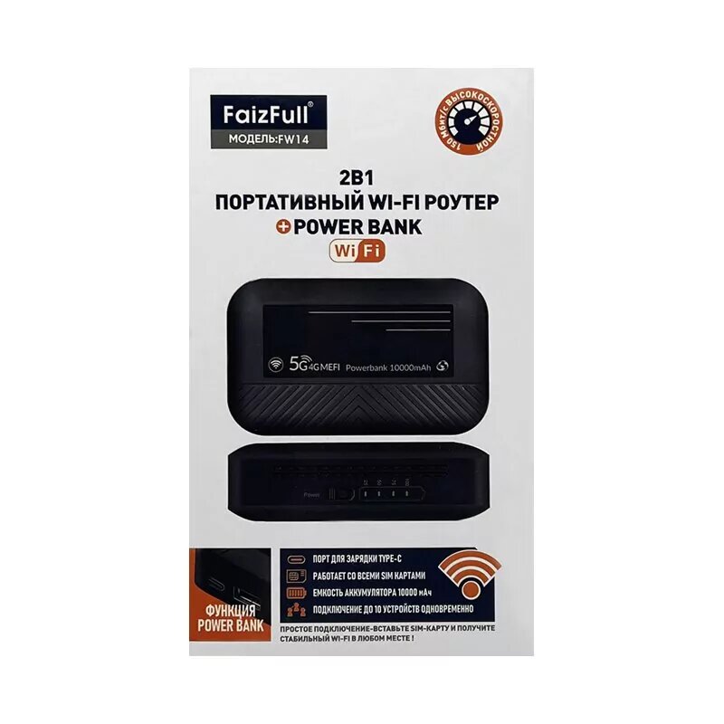 Купить Портативный Wi-Fi Роутер под любую Sim-карту с Power Bank 10000MAh FaizFull FW14