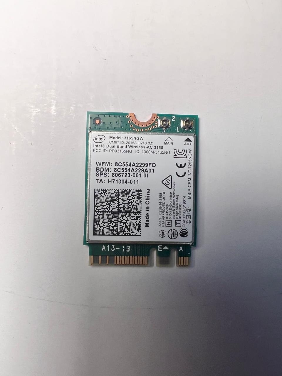 Модуль WI-Fi+Bluetooth Intel 3165 NGW EU, двухдиапазонный, 433 Mbps интересное:
