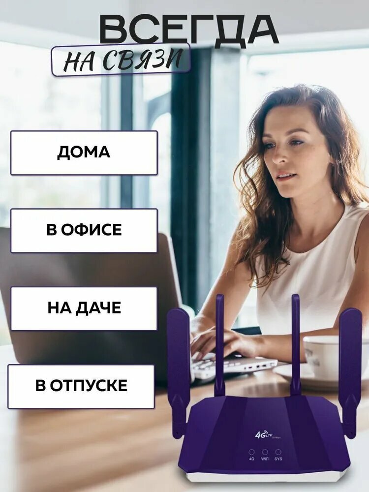 Роутер WI-FI с сим картой, 4G, Скорость - 300 Мбит/сек, Цвет - Фиолетовый интересное: