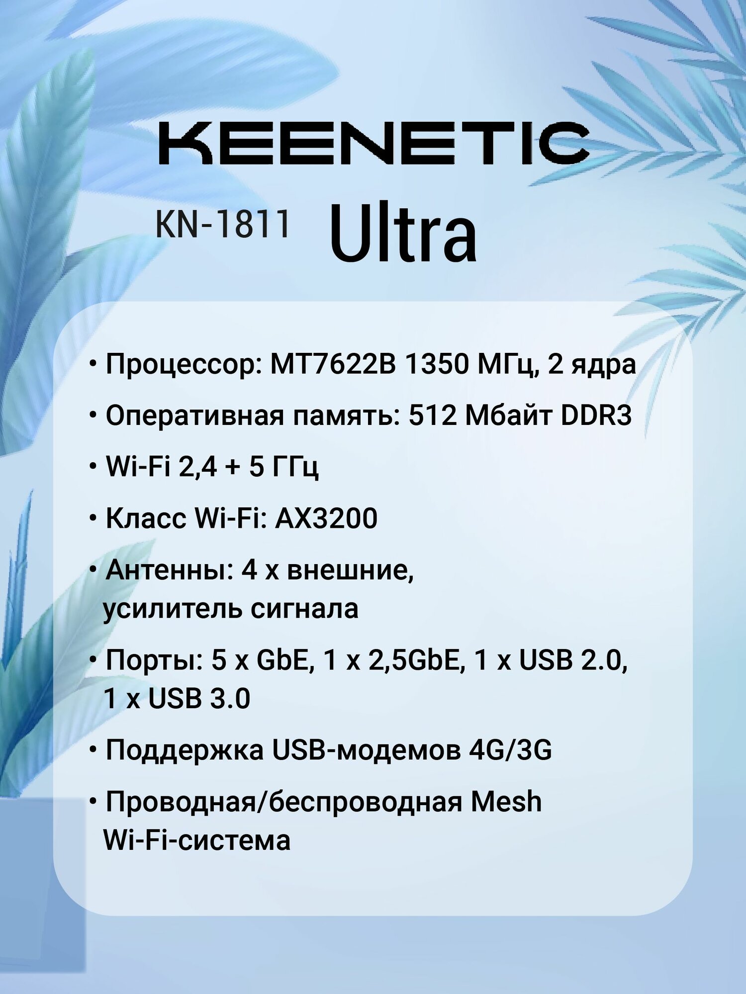 WiFi роутер Keenetic Ultra KN-1811 с Mesh Wi-Fi 6 AX3200, с 5 портами Gigabit Ethernet и 1 портом 2.5 Gigabit Ethernet интересное: