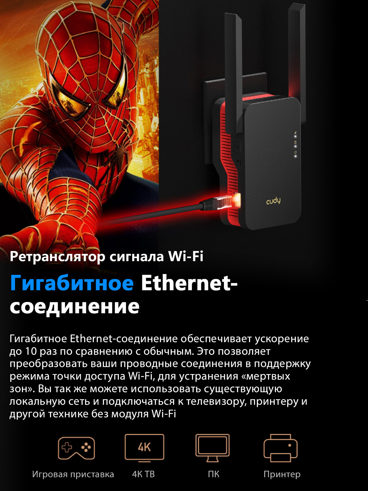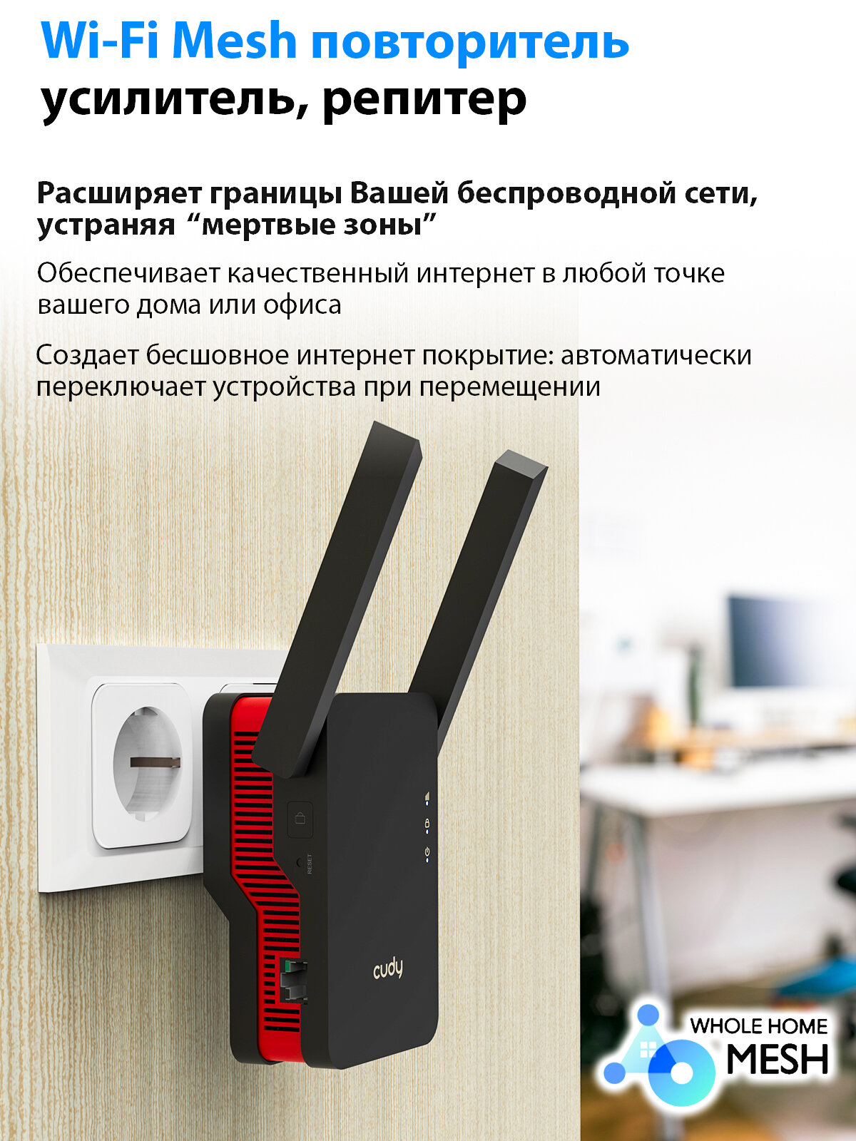 Wi-Fi 6 Mesh повторитель (усилитель) сигнала CUDY RE3000 интересное: