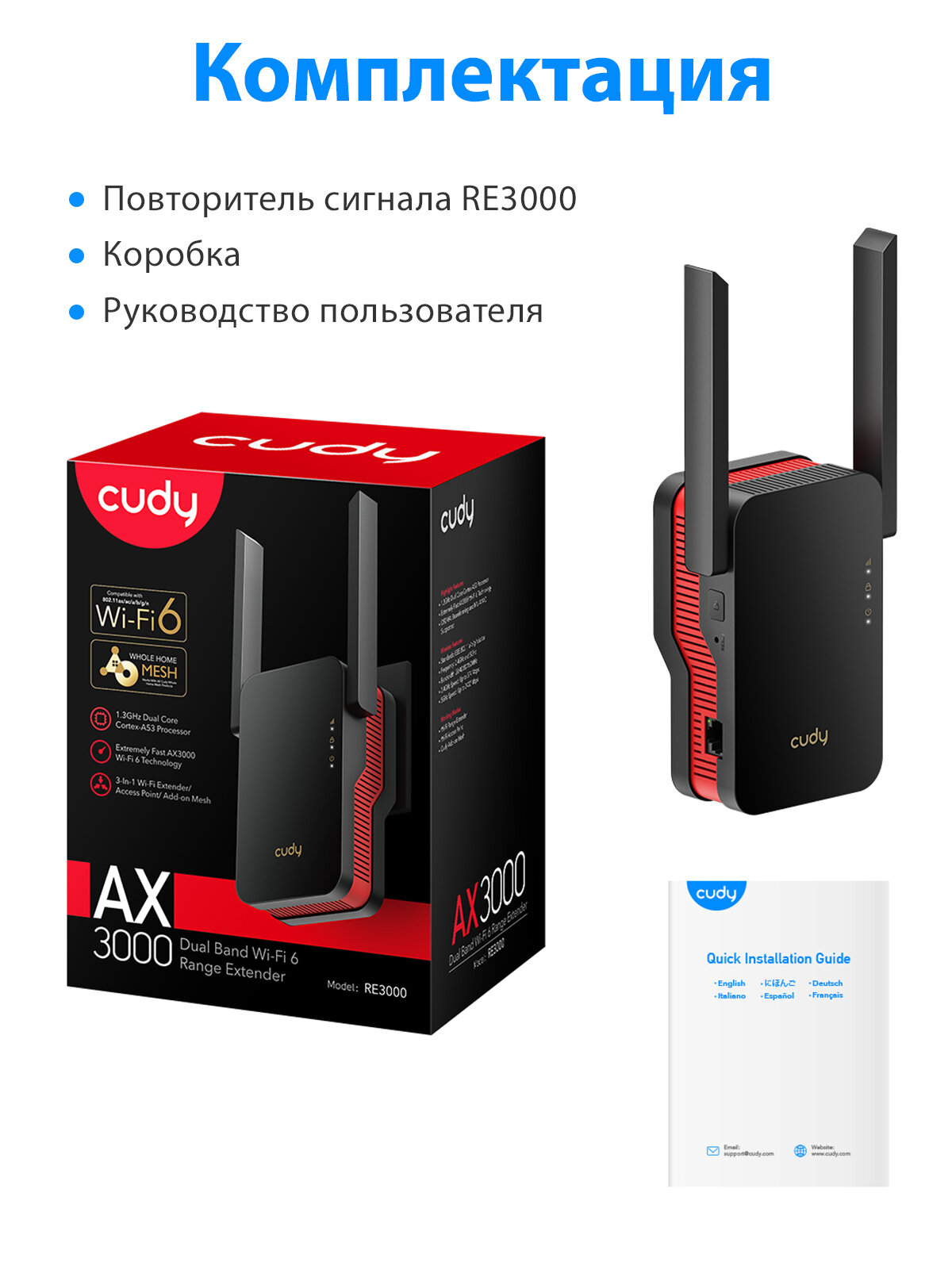 Купить Wi-Fi 6 Mesh повторитель (усилитель) сигнала CUDY RE3000