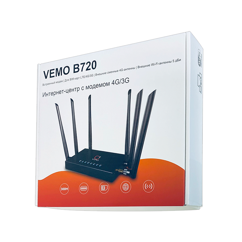 Роутер Wi Fi Vemo B720, cat.4, WiFi 2.4ГГц, до 300Мбит c внешними антеннами на магнитной подставке интересное: