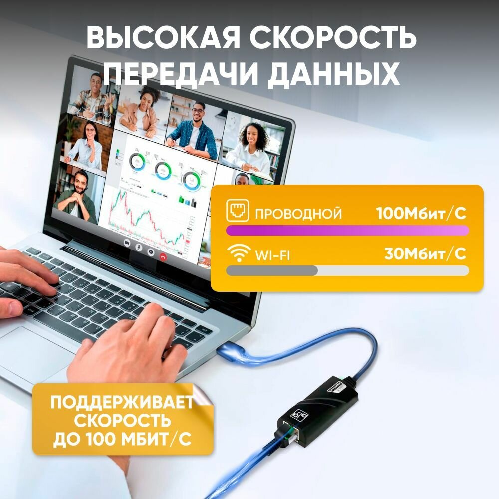 Сетевой адаптер для LAN-соединения USB 3.0 на RG45 Ethernet до 100 Mbps / внешняя сетевая карта для ноутбука / Ethernet интересное: