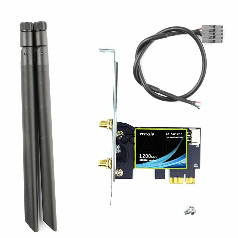Wi-Fi PCI-E Адаптер WTXUP TX-AC1200, 2.4/5 ГГц, 1200 Мбит/сек, Bluetooth 4.1, 2 Внешние Антенны, Сетевая Карта для ПК, для Компьютера интересное: