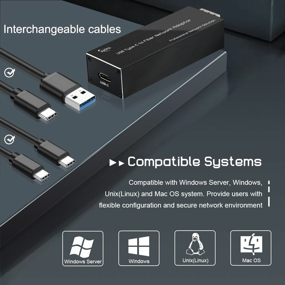 USB-C к оптоволоконному сетевому адаптеру USB3.0 к 100/1000M SFP для ноутбуков, телефонов, планшетов, поддержка Windows интересное: