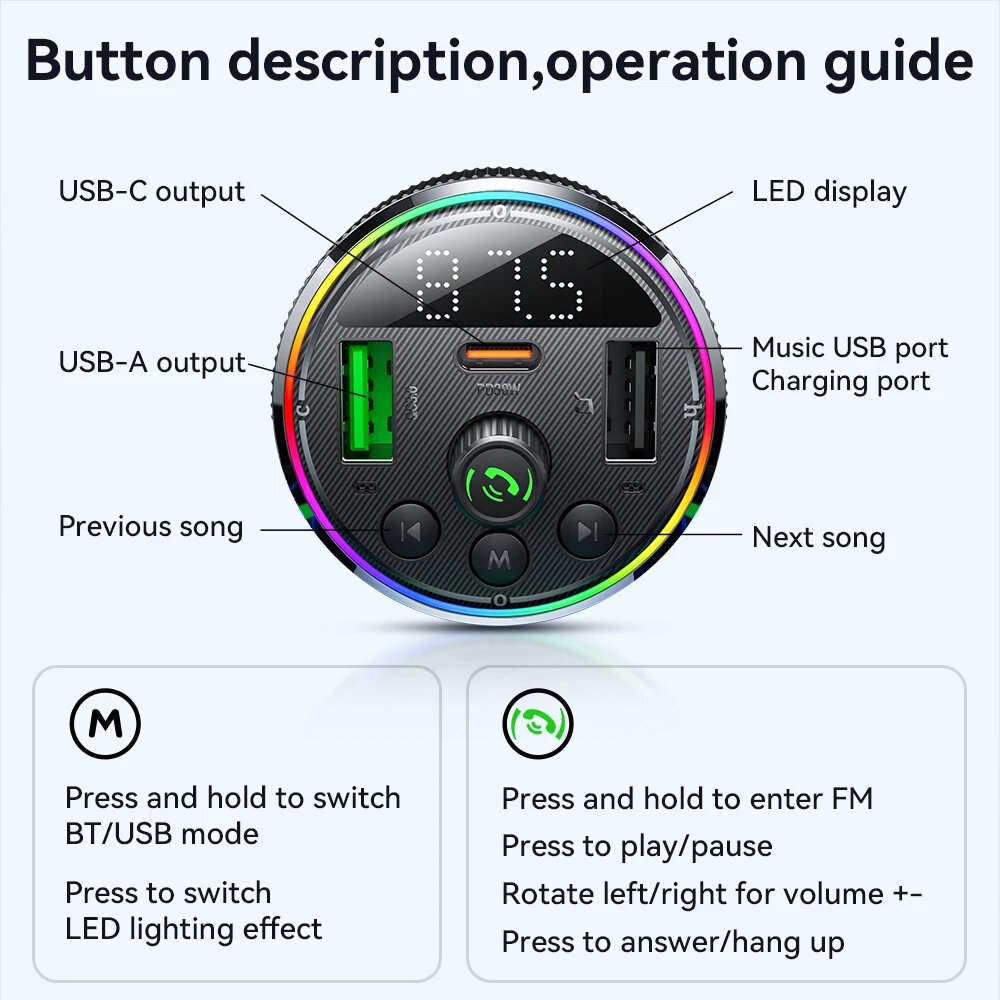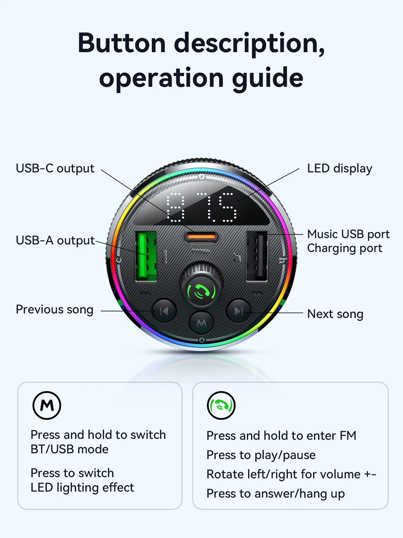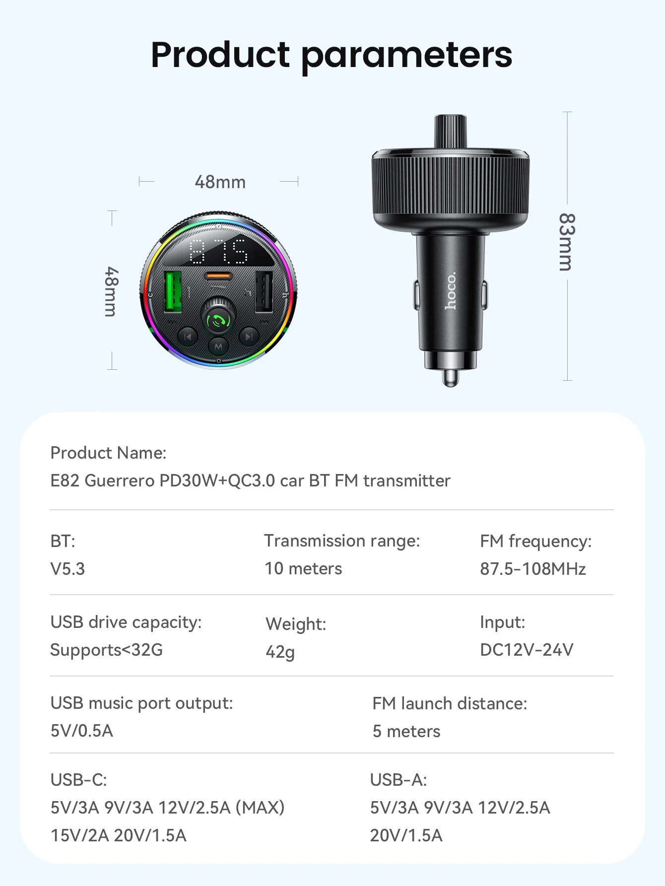Автомобильный FM-передатчик HOCO E82 с поддержкой Bluetooth 5,3 и функцией быстрой зарядки, Black, V5.3 интересное: