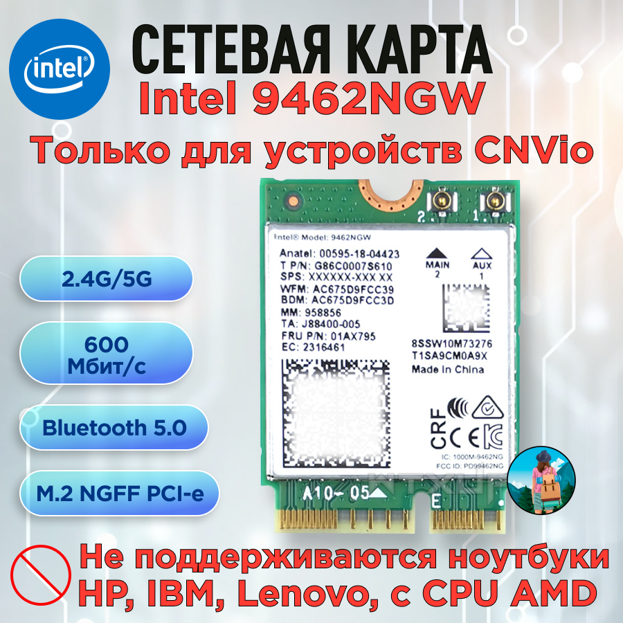 Двухдиапазонная сетевая карта 9462NGW AC CNVio Bluetooth 5.0 интересное: