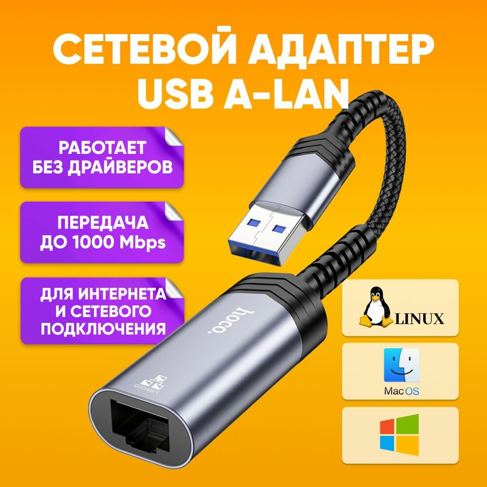 Сетевой Ethernet адаптер переходник USB-А - LAN Rj45 HOCO UA26, черный / кабель коннектор 1000 Mbps для интернет кабеля интересное: