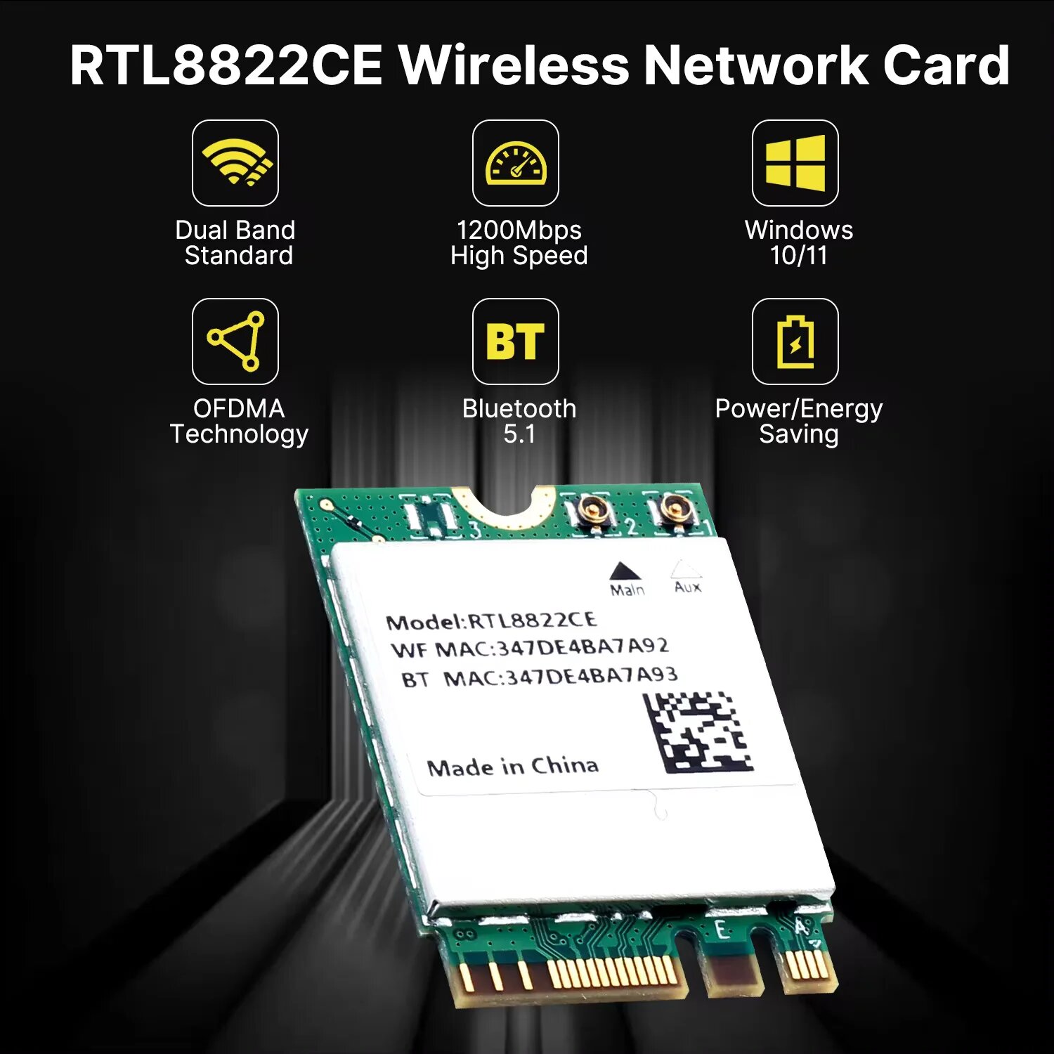 Wi-Fi карта RTL8822CE 1200 Мбит/с Bluetooth 5.1, RTL8822CE интересное: