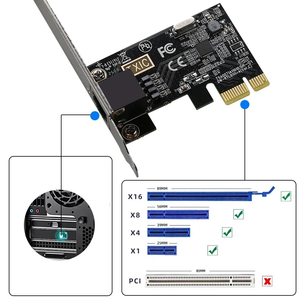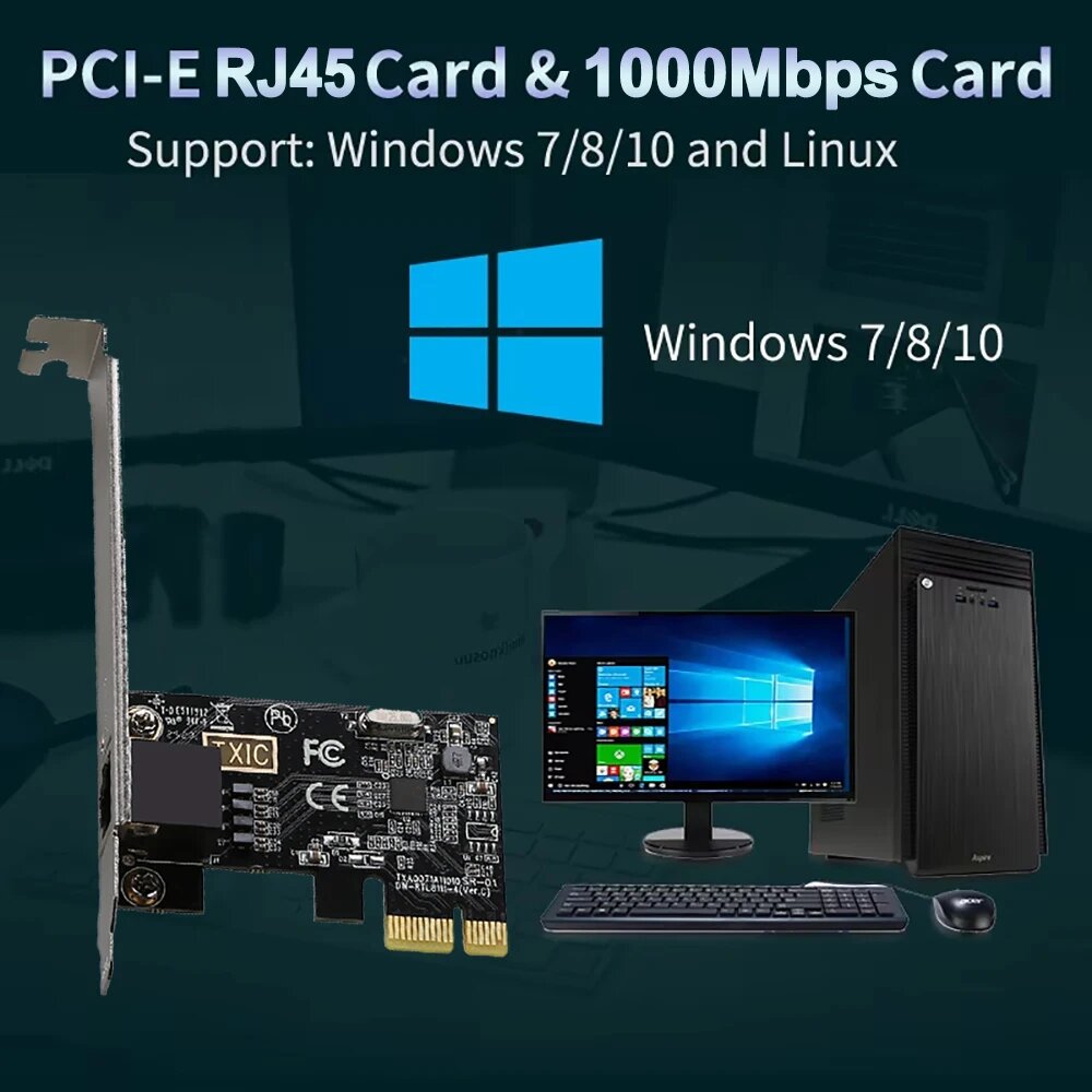 Купить Сетевая карта kebidu PCI-E Intel 8111E 1000 Мбит/с, Black