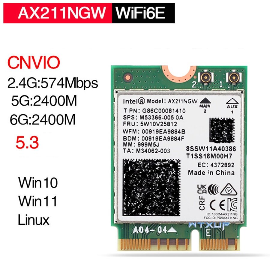 Трехдиапазонная сетевая карта AX211NGW CNVio Bluetooth 5.3 интересное: