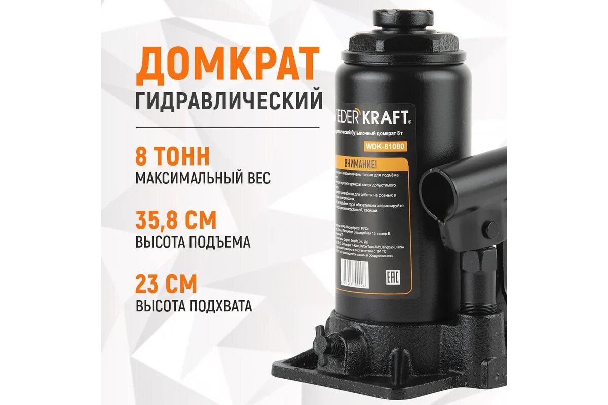 Домкрат гидравлический бутылочный 8 тонн WIEDERKRAFT 230-358 мм WDK-81080