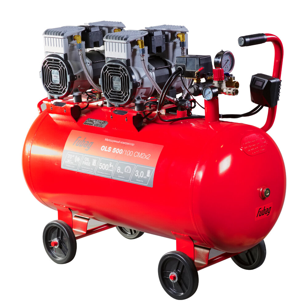 Купить Компрессор воздушный безмасляный малошумный FUBAG OLS 500/100 CM2х2, 500 л/мин, ресивер 100, 8 бар, 220 В