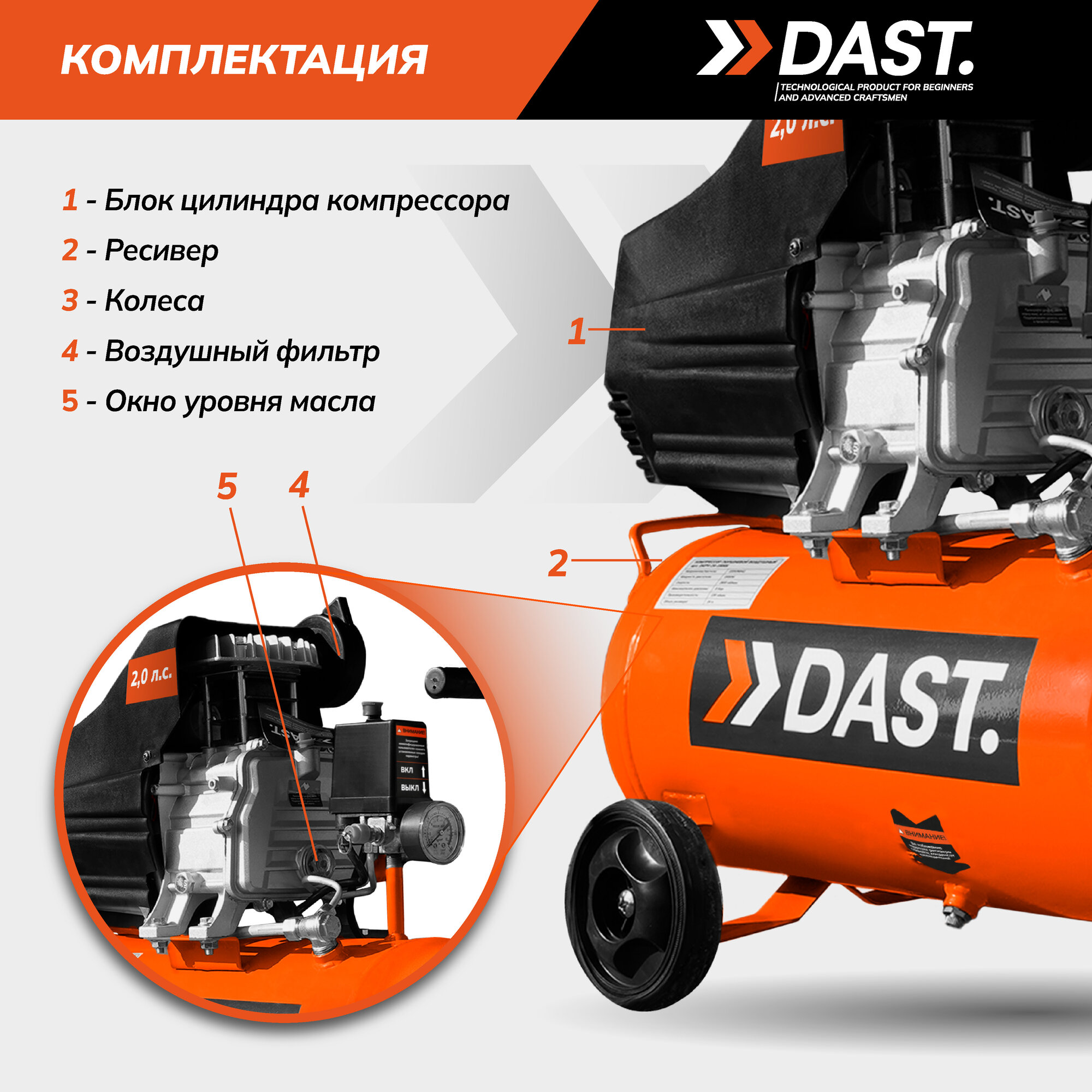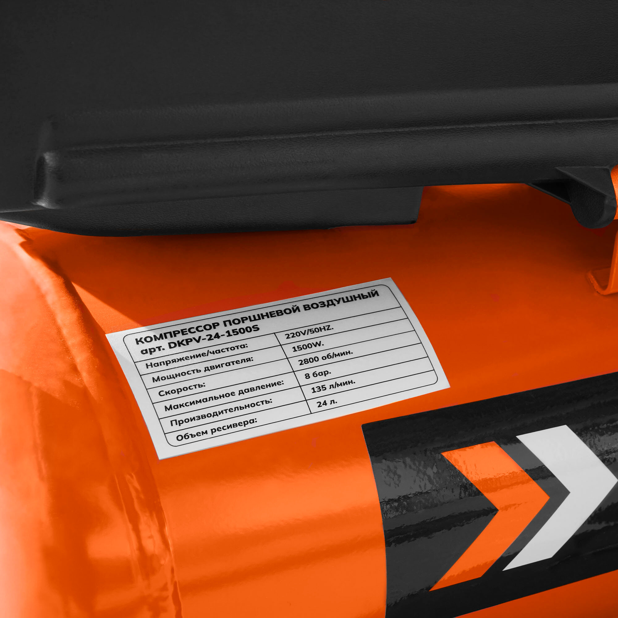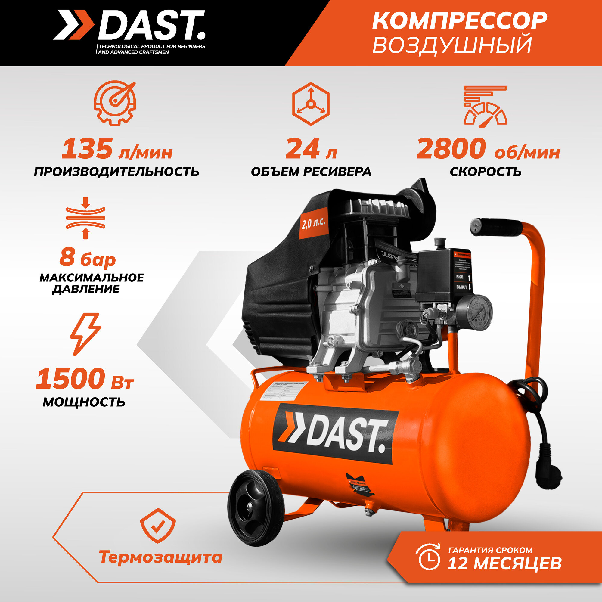 Купить Компрессор поршневой масляный DAST 24 л, 135 л/мин, 1500 Вт, быстросъемный коннектор, кабель 1,3 м, DKPV-24-1500S
