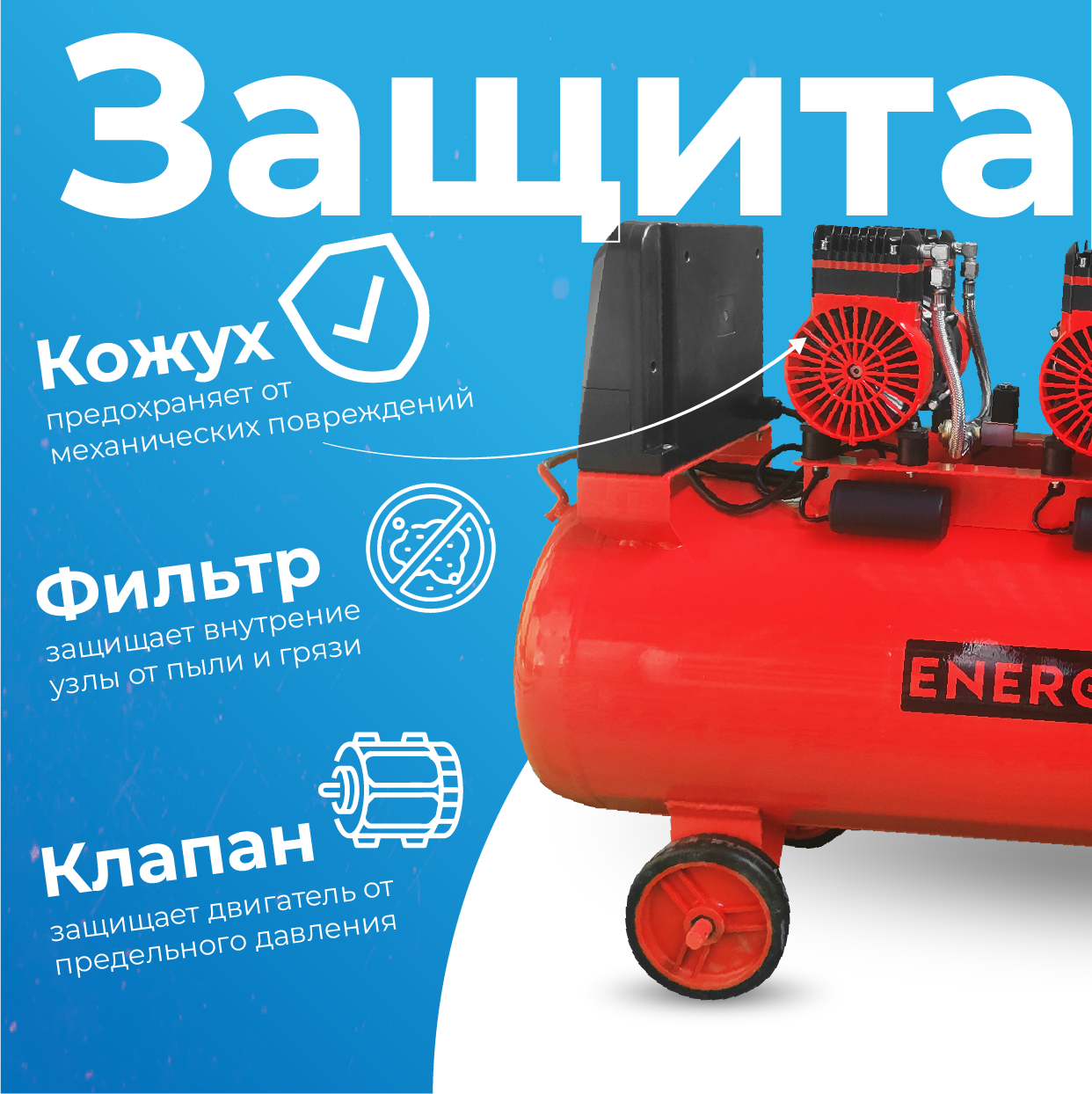 Безмасляный воздушный компрессор ENERGOKRAFT AIRMAX 100/720 ( ресивер 100 литров 720л/мин) пневматический, поршневой, электрический интересное: