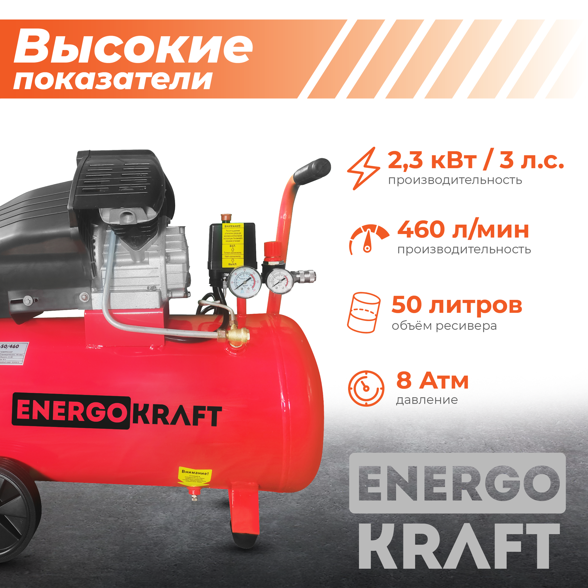 Купить Компрессор ENERGOKRAFT Titan-50/460 ( 2,3кВт, 50л, 460 л/мин)