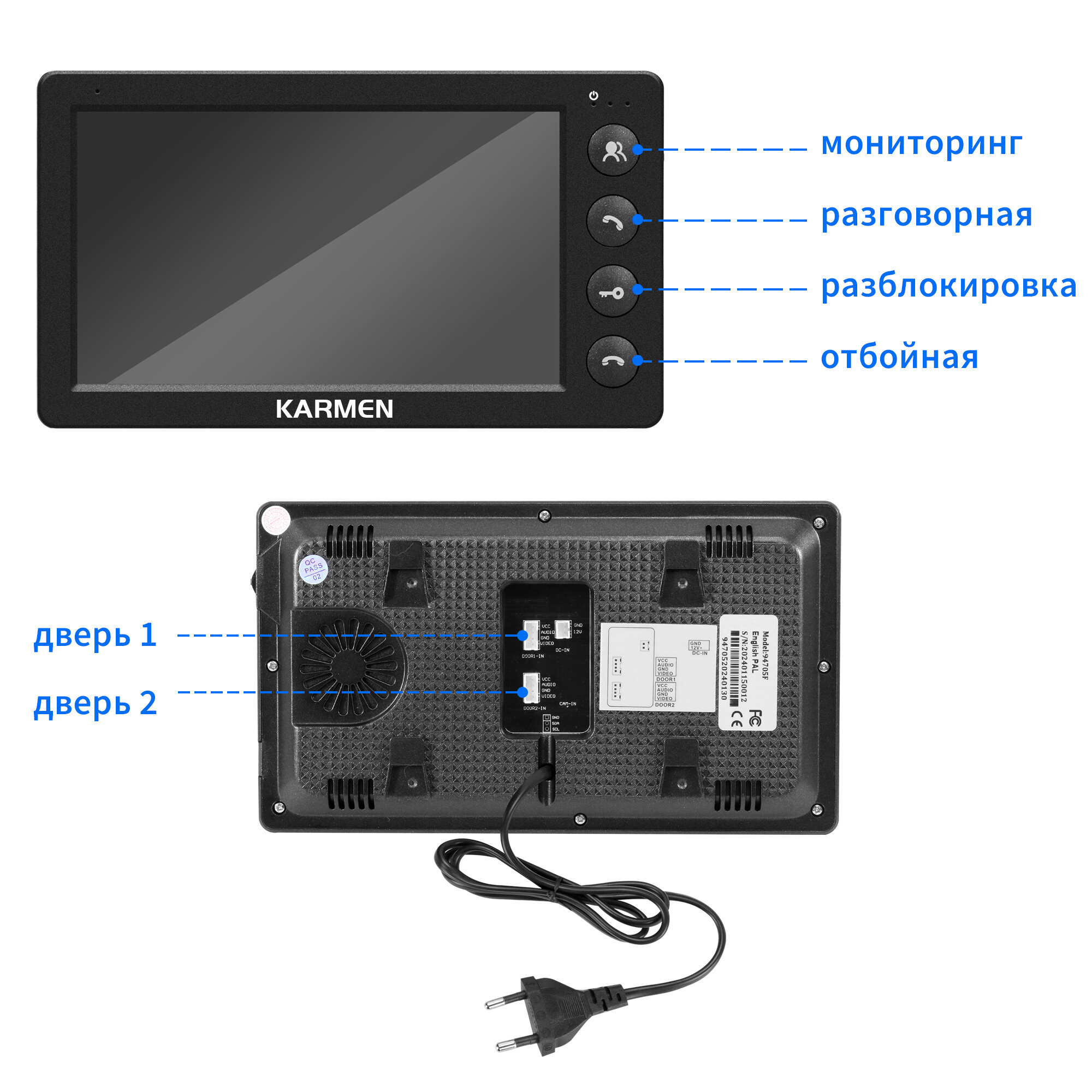 Купить KARMEN Видеодомофон с экраном 7', черный Металлический дверной звонок 1000TVL,Защита от угона, дождя и снега