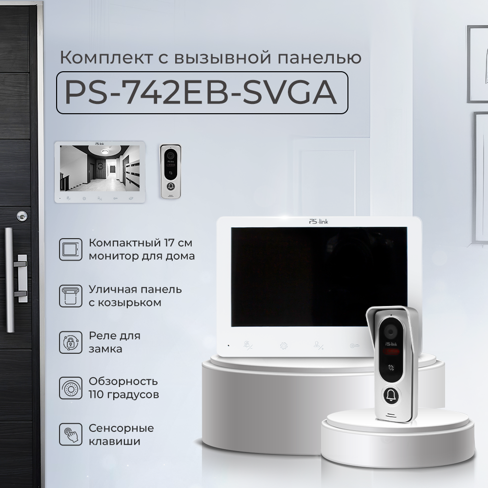 Комплект видеодомофона PS-link 742EB-SVGA с 7-дюймовым экраном и вызывной панелью интересное: