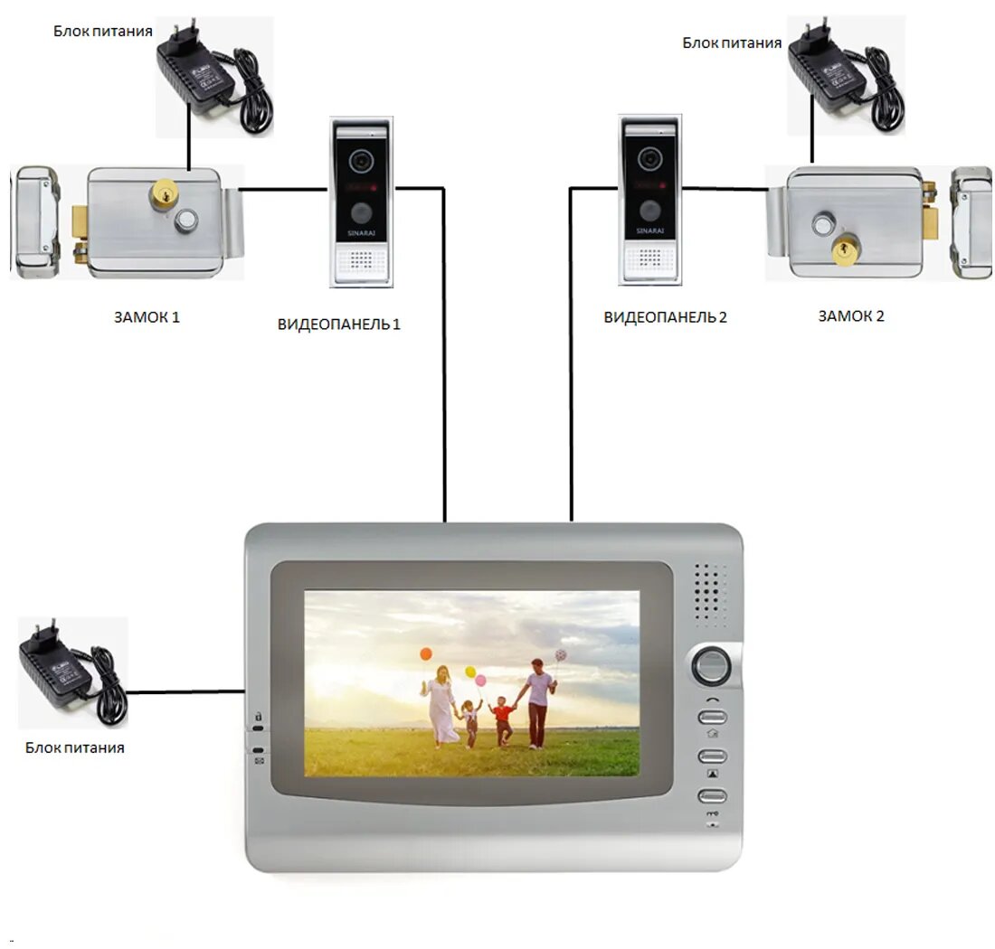 Видеодомофон цветной CS-300SVС9, экран 7", подключение 2-х видеопанелей. Работа с подъездным домофоном через адаптер интересное: