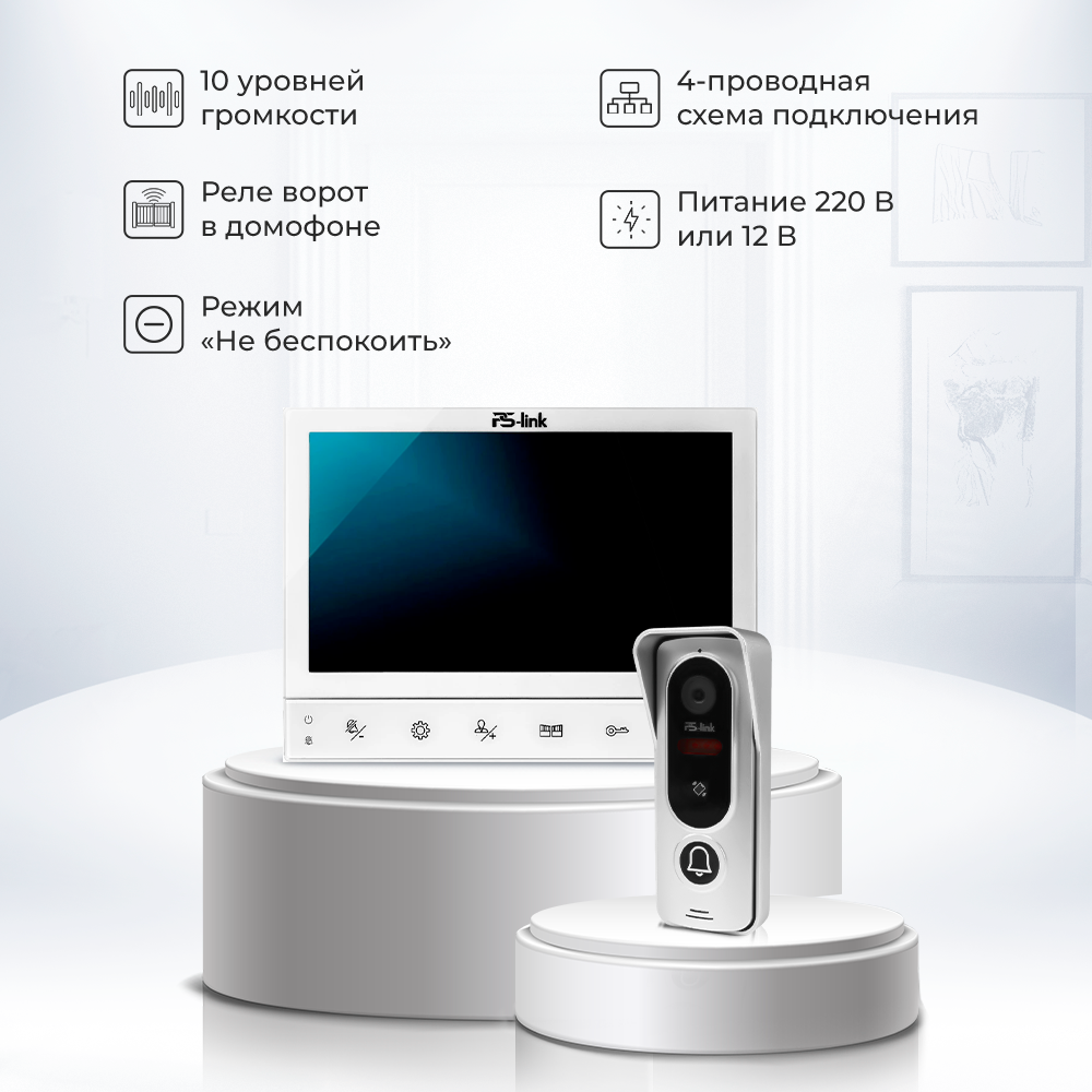 Комплект видеодомофона PS-Link PS-729EB-FHD с 7-ми дюймовым экраном и вызывной панелью интересное: