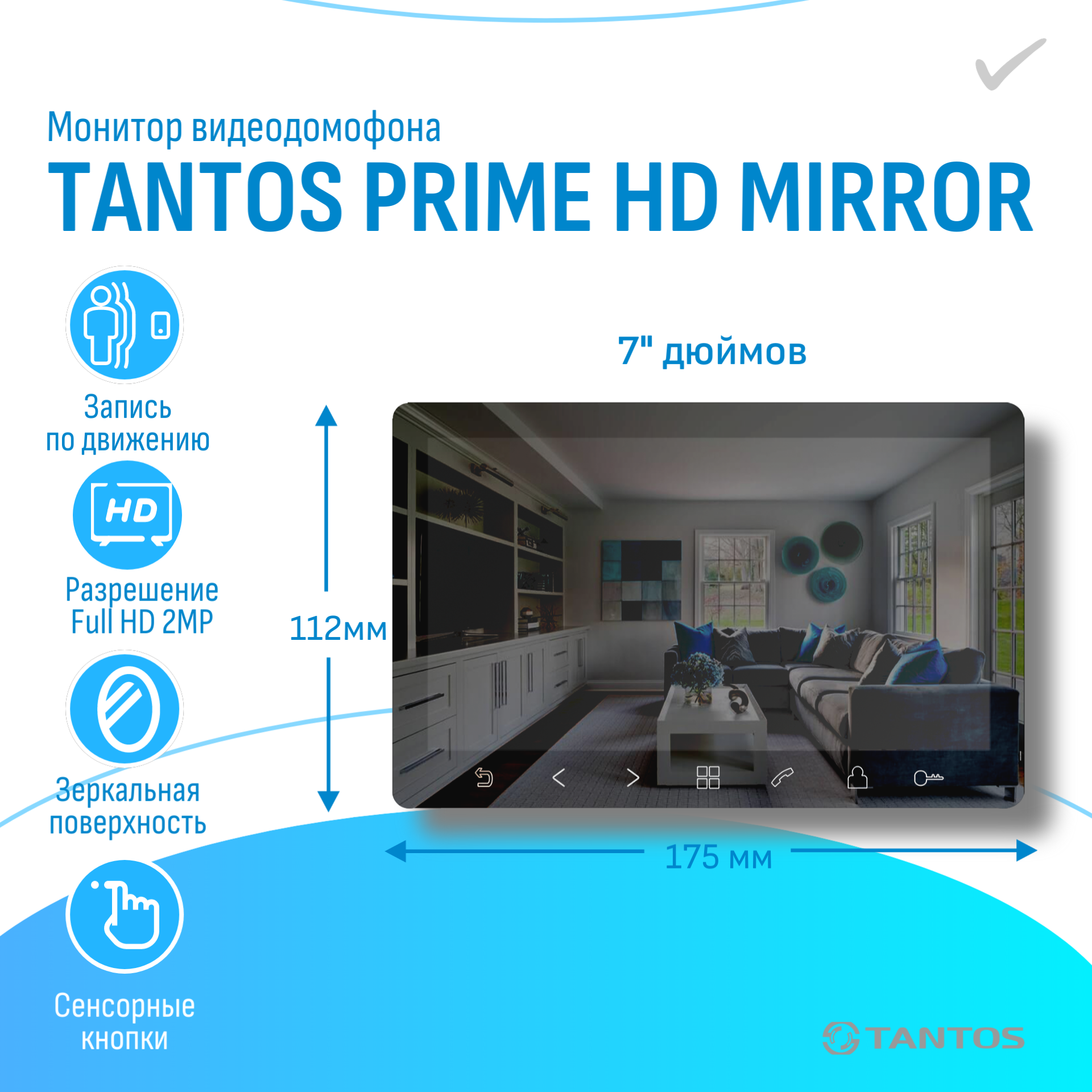 Видеодомофон TANTOS PRIME HD MIRROR комплект для квартиры и дома интересное:
