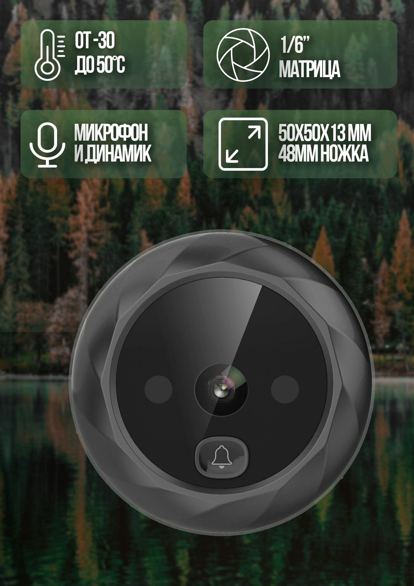Купить Видеоглазок Sunrise для входной двери с записью фото и звонка, с ИК- подсветкой