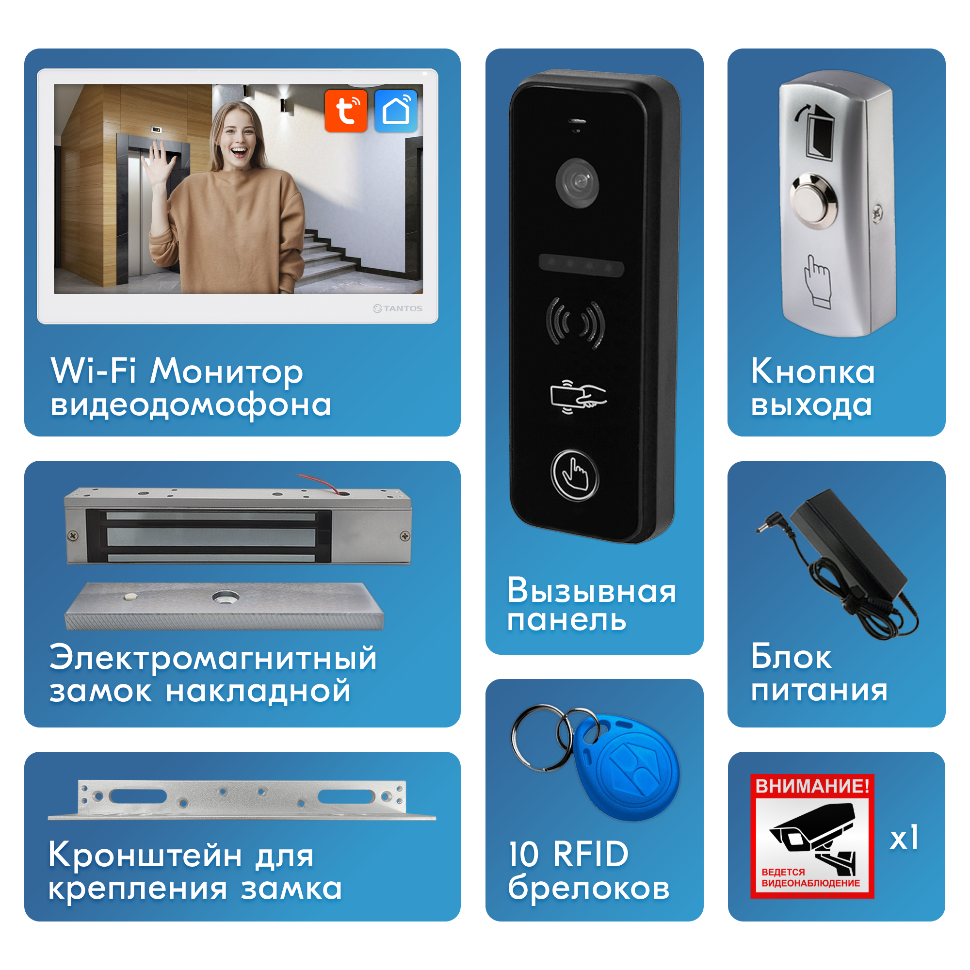 Комплект видеодомофона Wi-Fi 10", вызывная панель со встроенным считывателем , электромагнитный замок 280кг - Белый интересное: