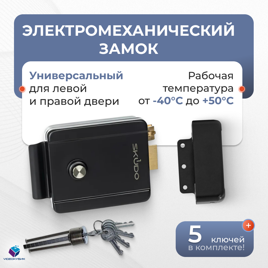Видеодомофон для частного дома, комплект с электромеханическим замком на калитку, электронными ключами, вызывной панелью интересное: