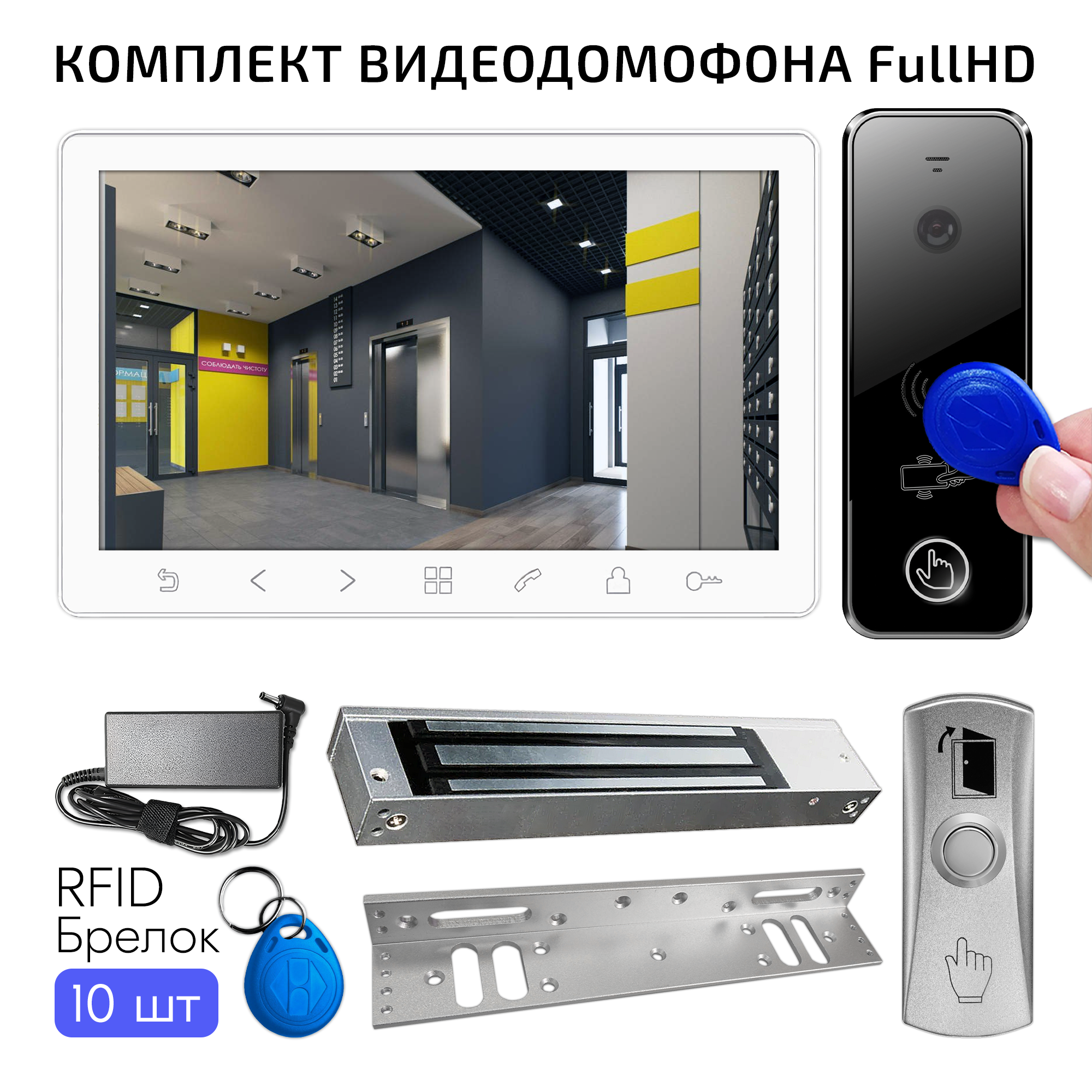 Купить Видеодомофон для дома комплект FullHD, белый, вызывная панель со встроенным считывателем