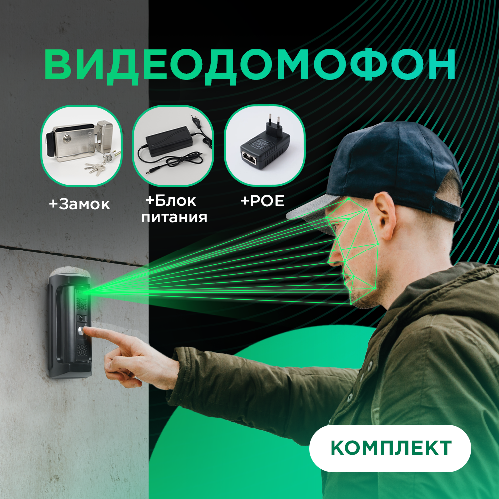 Умный видеодомофон вызывная панель с записью видеозвонок датчиком движения PoE-инжектор