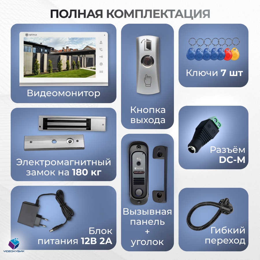 Видеодомофон для частного дома комплект с электромагнитным замком, электронными ключами, вызывная панель со считывателем интересное: