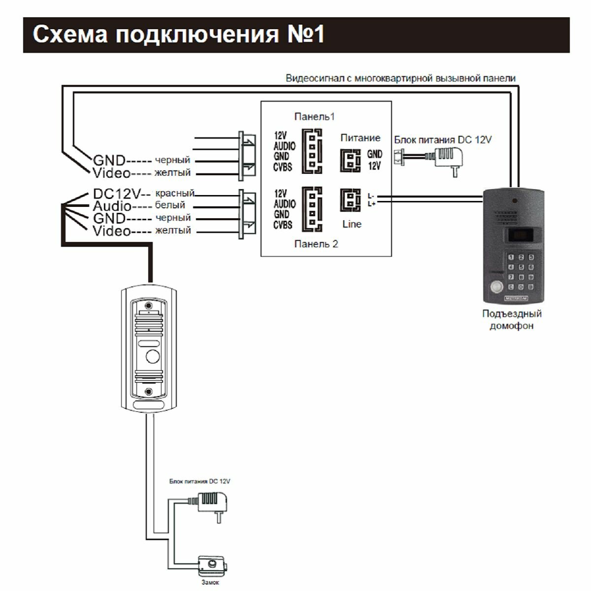 Видеодомофон для дома, комплект с замком на калитку, VD44K-KIT-60C (DEL2369)