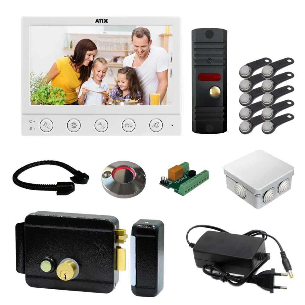 Видеодомофон с замком и ключами TM Atix 7" комплект для дома на калитку интересное: