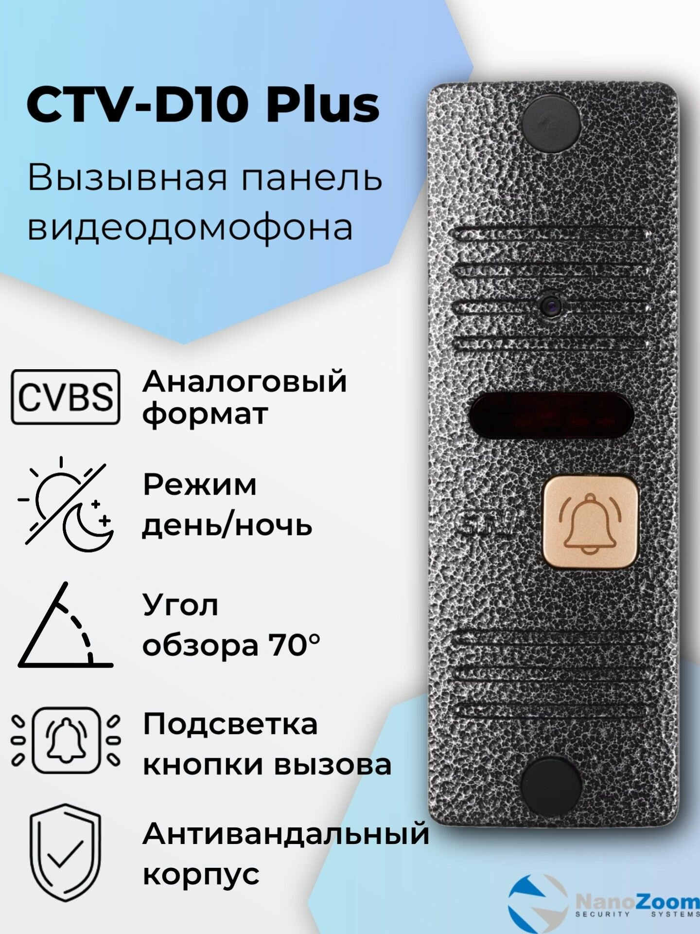 Купить Комплект видеодомофон для квартиры: аналоговый монитор 7" CTV-M3702 Gamma + вызывная панель CTV-D10 Plus, для дома или офиса, удаленное открытие замка, подключение к подъездному домофону