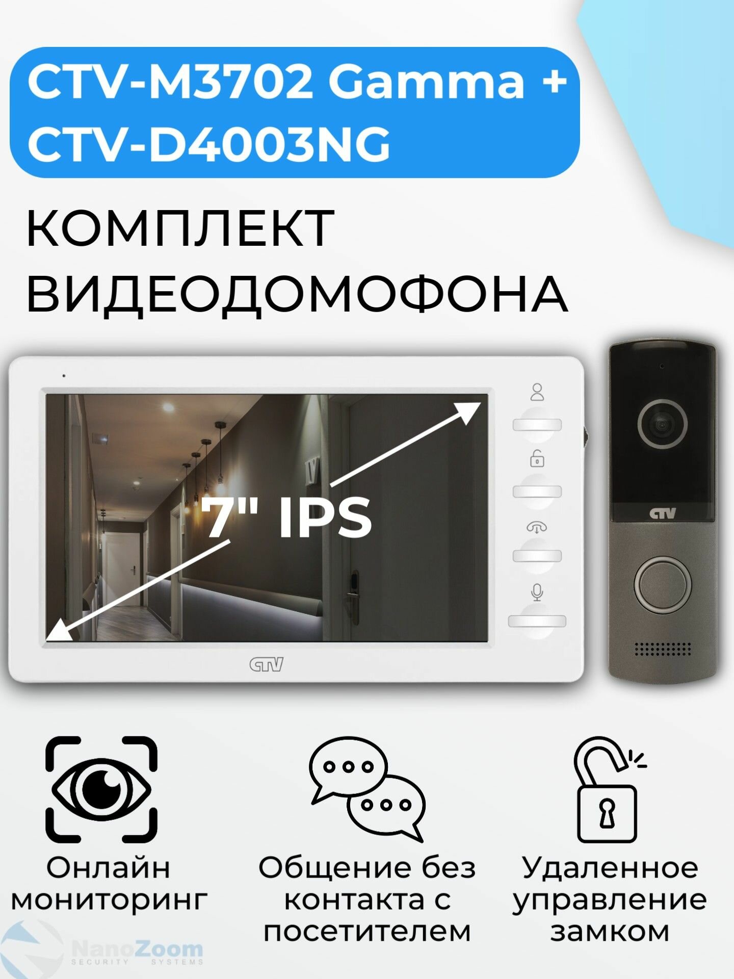 Купить Комплект видеодомофон для квартиры: аналоговый монитор 7" CTV-M3702 Gamma + вызывная панель CTV-D4003NG, для дома или офиса, удаленное открытие замка, подключение к подъездному домофону