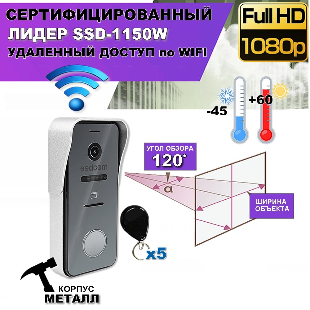 Купить Видеодомофон WiFi ЛИДЕР SSD-1150W, вызывная видеопанель
