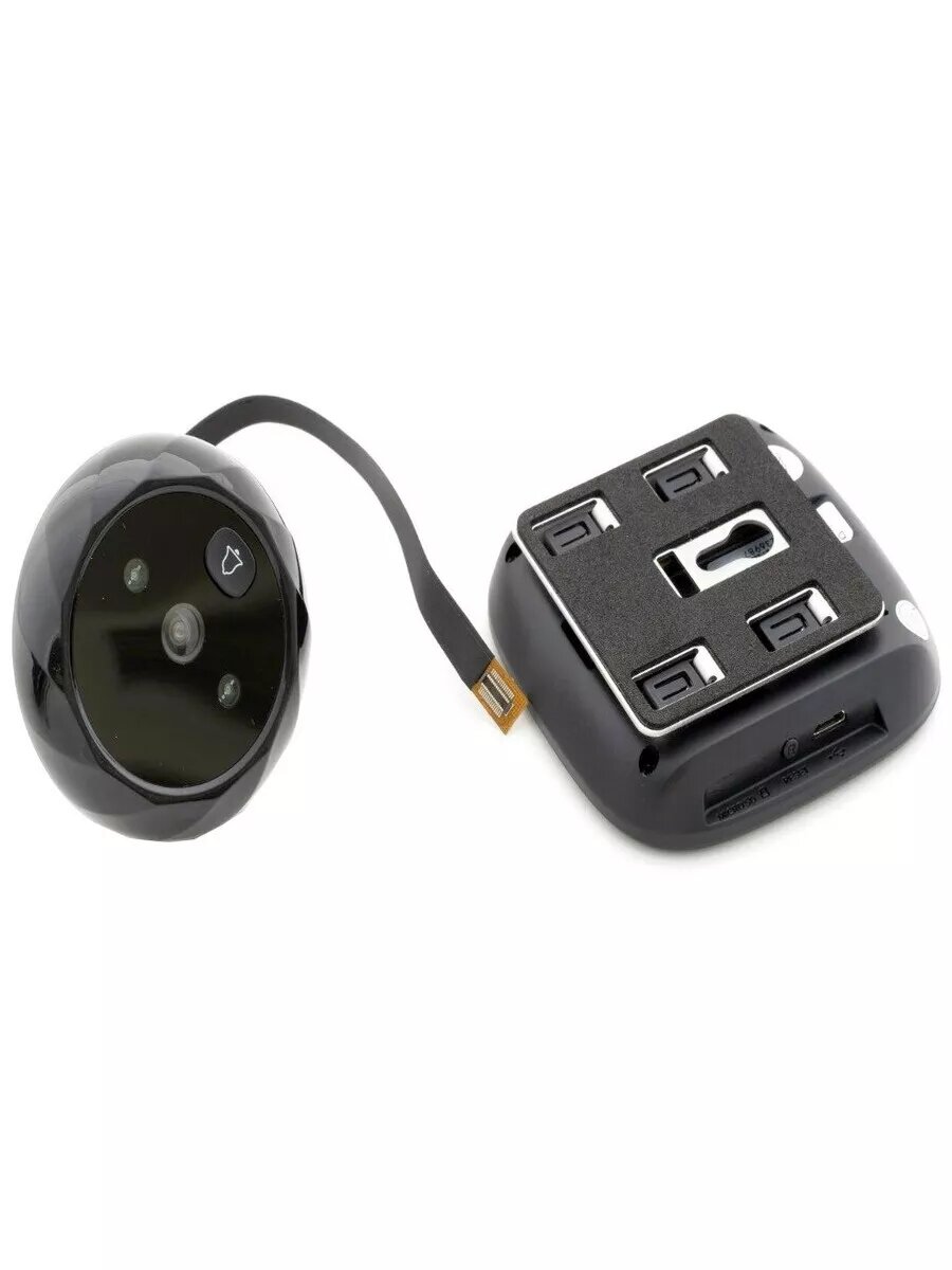 Купить Видеоглазок для входной двери с фото записью и звонком, углом обзора 90°, чёрный