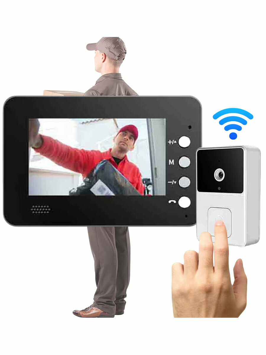 Комплект беспроводной дверной звонок, видеодомофон с монитором 4.3" интересное: